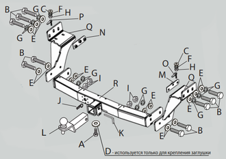 - ТСУ (фаркоп) / съемный квадрат устанавливается в штатные места автомобиля, предусмотренные заводом – изготовителем.