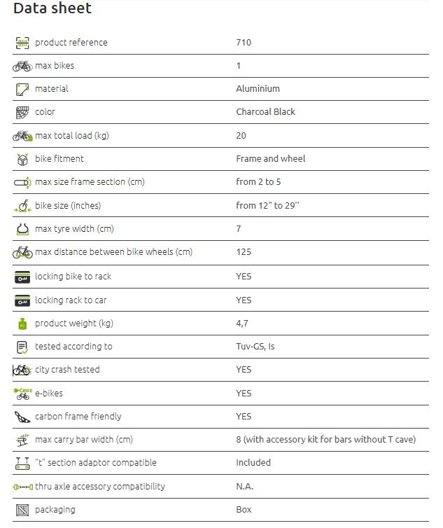 Крепление велосипеда PERUZZO Pure Instinct (Италия). Данное крепление служит для перевозки велосипеда на крыше автомобиля. Фиксация колес обеспечивается парой ремешков, крепление рамы специальным зажимом. Диаметр рамы велосипеда должен находиться в пределах 20-50мм. Устанавливается на поперечины в Т-слот аэродинамических перекладин специальными переходниками, которые идут в комплекте. Цвет темно-серый. В комплект входят замки, которые запирают как само крепление на поперечинах багажника, так и перевозимый велосипед.