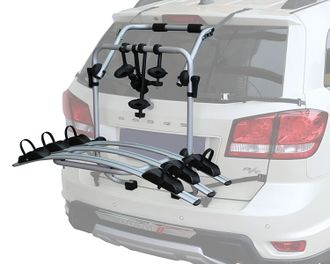 Крепление для перевозки до 3-ех велосипедов Viain VBC H103, имеет прочную конструкцию выполненную из алюминиевой трубы, с ударопрочными пластмассовыми деталями. Устанавливается на заднюю дверь внедорожников, минивэнов, фургонов, автомобилей с кузовом типа хэтчбек, универсал, также подходит для седанов с креплением за крышку багажника. Благодаря уникальной геометрии монтаж велокрепления осуществляется быстро и легко, при этом велосипеды удерживаются вдали от кузова транспортного средства. Зажимы-фиксаторы велосипедных рам изготовлены из армированного нейлона и обладают большой прочностью. Совместимы со всеми размерами велосипедных рам. Держатели колес надежно фиксируют все типы велосипедов: от имеющих большие колесные диски до самых маленьких – детских. В комплектацию входит дополнительный ремень безопасности для лучшей фиксации перевозимого снаряжения. Крючки-фиксаторы имеют защитное покрытие, предотвращающее повреждения и сколы на лакокрасочном покрытии кузова транспортного средства. Без установленных велосипедов велокрепление складывается для удобства парковки и хранения.